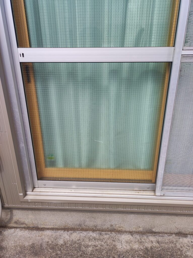 〇網入りガラスは、マンションや防火地域の建物で使用され、火災時にガラスが原型を保ち炎の延焼を防ぐ防火性能を持っています。霞タイプ・透明磨きタイプのヒシワイヤーガラスは在庫常備。即日交換対応いたします!