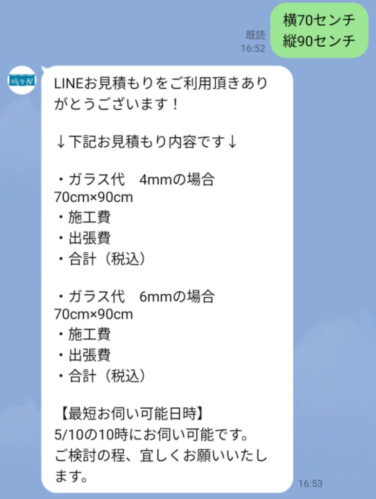 当店はコールセンターや営業マンなどは一切介さず、受付→お見積もり→施工まで全て自社対応しておりますので、ガラス修理までスムーズかつ迅速にご対応可能です。