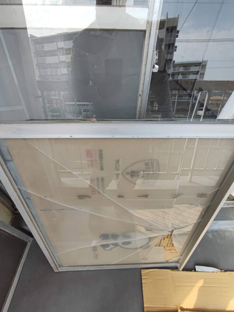 「入居者さんから、ガラスが割れていたよ、と連絡があったんですが見にいけますか?できれば明日の夕方までには直したいのですが。」とご連絡頂き、夕方までといわず、お昼過ぎにはガラス修理をさせて頂きました!