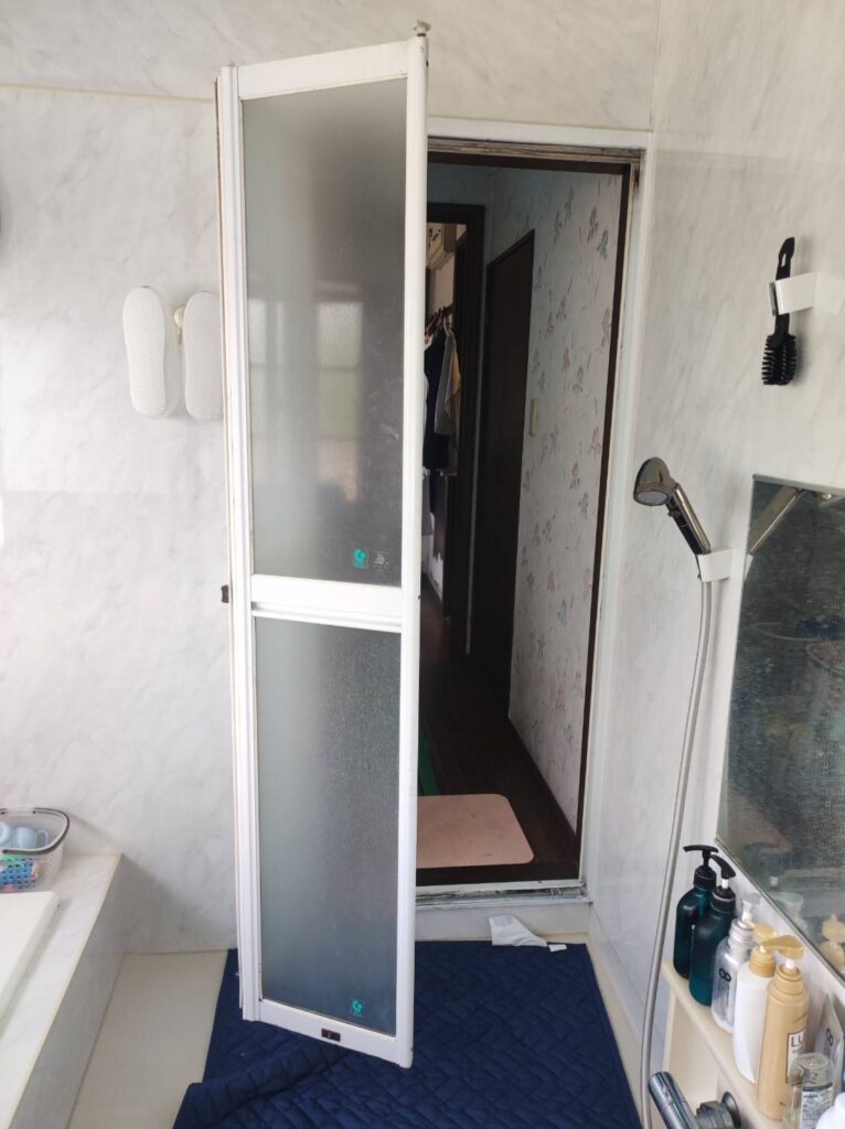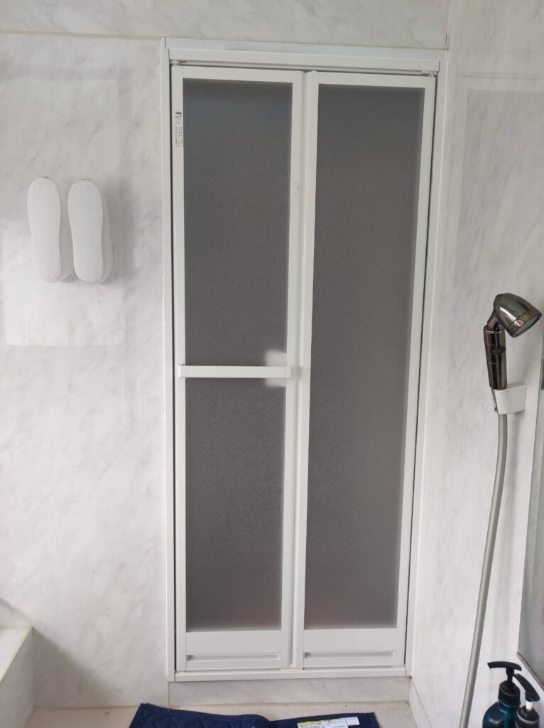 三協アルミの強化ガラス入り浴室折れ戸をYKKドアリモのアクリル入り浴室折れ戸に交換しました!